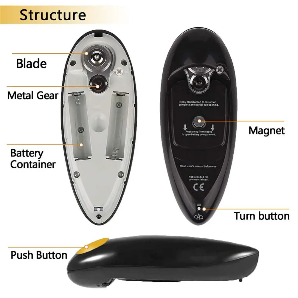 【Ergonomic Design】: You can easily open the can with just one push of a button. Great for left-handed, disabled and people with hand pain or arthritis. The small size makes it easy to store in a drawer.